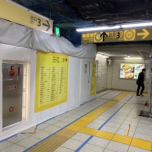 ②改札を出たら右方向に進みます。階段を上り、3番出口を目指してください。