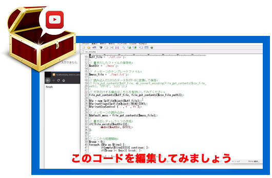 私が作ったプログラムを実際にあなたのPCで動かして、少し編集してみるという簡単な内容です。