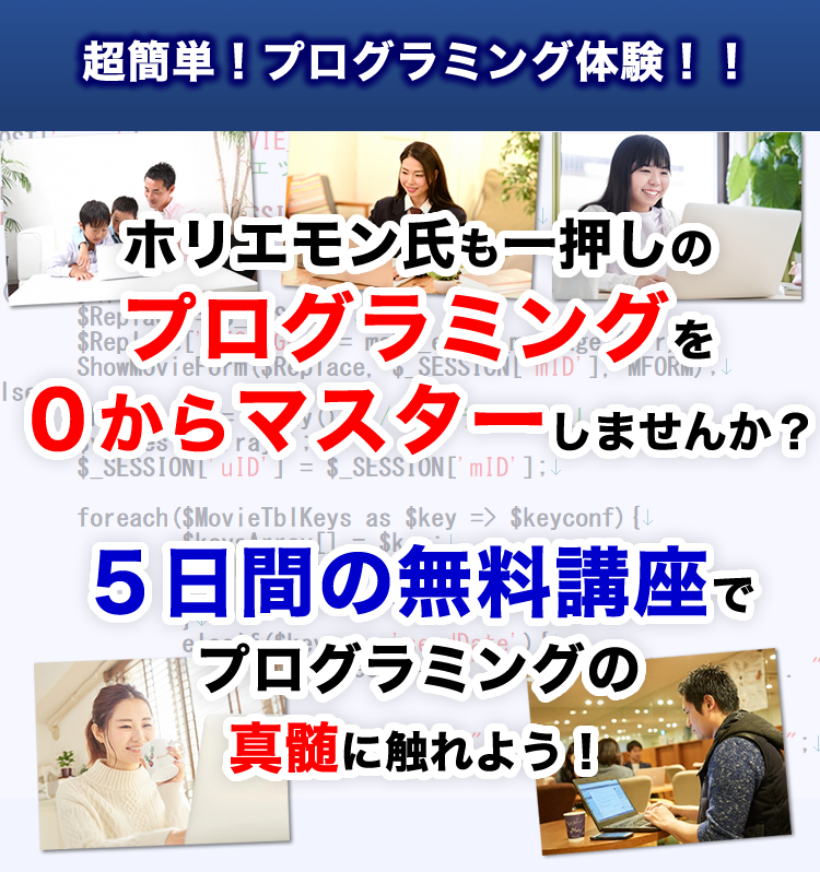 という方が大半でしょうから、この度、プログラミングに触れて頂くための無料講座を企画しました。